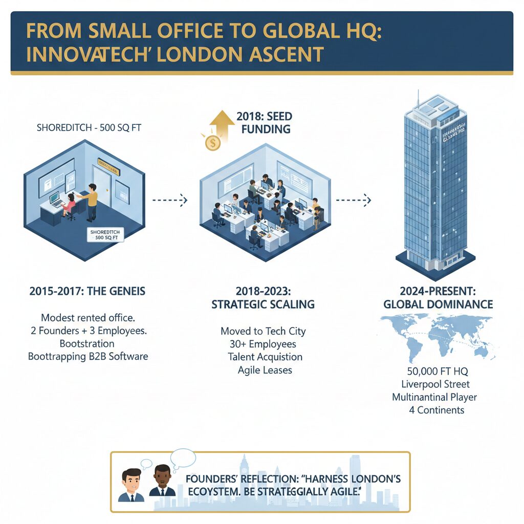 The story of Innovatech Solutions is a testament to the power of ambition and the strategic importance of environment. From the cramped confines of a Shoreditch rental to the commanding views of a City skyscraper, their physical footprint has mirrored their corporate stature. As they look to the future, their Liverpool Street HQ stands not just as a place of work, but as a monument to their journey from small office space to global HQ.